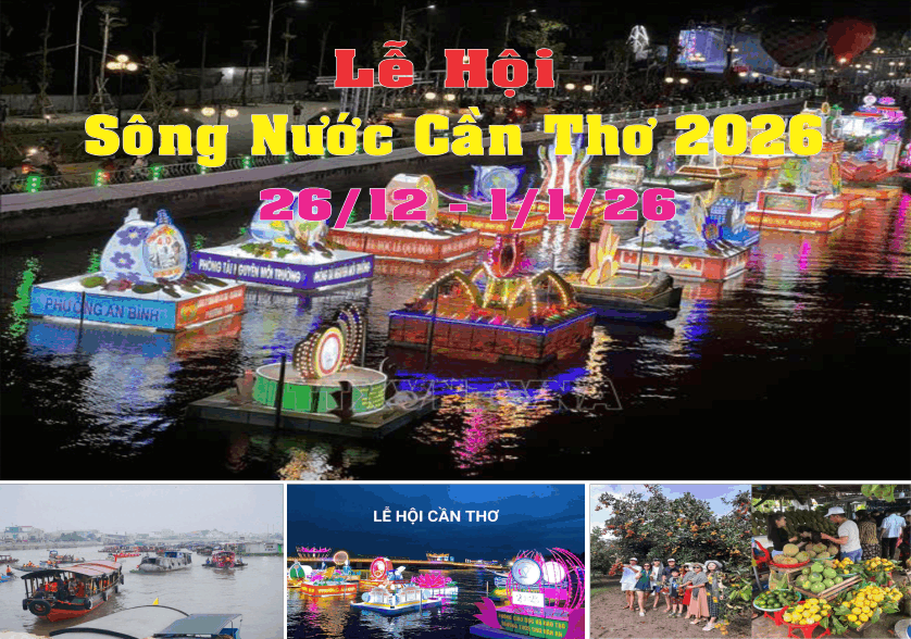 | Lịch khởi hành lễ hội sông nước Cần Thơ | khởi hành ngày 25/12, 27/12, 29/12, 1/1/2026 giá tour 2.950.000 đ/1 người | |